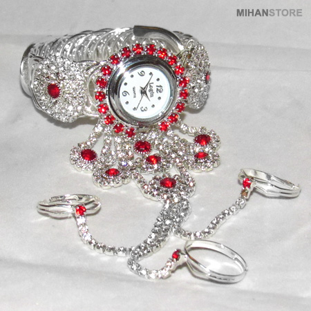 مدل دستبند انگشتری متصل که به آن تمیمه می گویند، یکی از زیورآلات و جواهرات ترکیبی شیک و زیبای مورد علاقه خانم ها است. ساعت دستبندی و انگشتری GEM دستبند با زنجیرهای تزیینی یا ترکیب نگین و زنجیر به 3 انگشتر وصل شده است. ساعت دستبندی و انگشتری GEM قابلیت تنظیم دستبند و انگشتر به هر سایزی را دارد. نگین های این محصول بسیار با کیفیت می باشند و همچنین آبکاری این ساعت فوق العاده با کیفیت و مقاوم است.