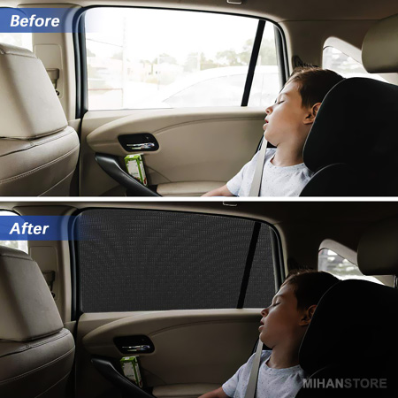 هر بسته شامل 4 عدد پشه بند و آفتاب گیر قابل استفاده در تمامی اتومبیل ها