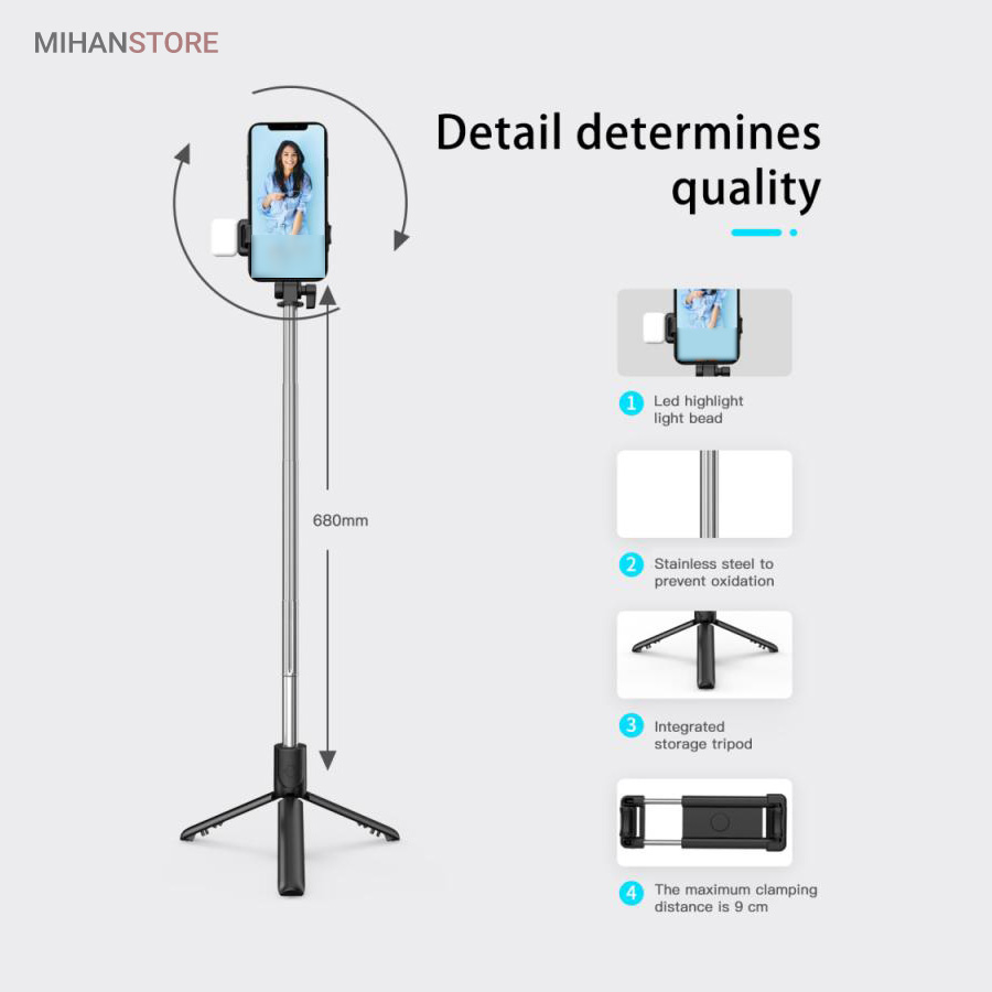 آیا دوست دارید از خود عکس بگیرید اما نمی خواهید فقط به قابهای باریک محدود شوید؟ آیا شما اغلب مسافرت می کنید و به دنبال یک دستی سلفی هستید که در کوله پشتی جای بگیرد و فضای زیادی را اشغال نکند؟ ما چیزی برای شما داریم! بسیار مفید و جمع و جور است و به همین دلیل در هر جیبی جای می گیرد. می توان آن را به سرعت به یک سه پایه مونتاژ کرد و بنابراین ضبط های بدون لرزش را تضمین می کند ، که به لطف کنترل از راه دور بلوتوث مدیریت آن آسان می شود.