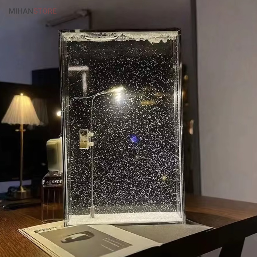طراحی منحصربهفرد و خلاقانه: شبیهسازی دقیق یک شب برفی با تیر چراغ برق روشن، مناسب برای عاشقان دکورهای خاص و هنری.