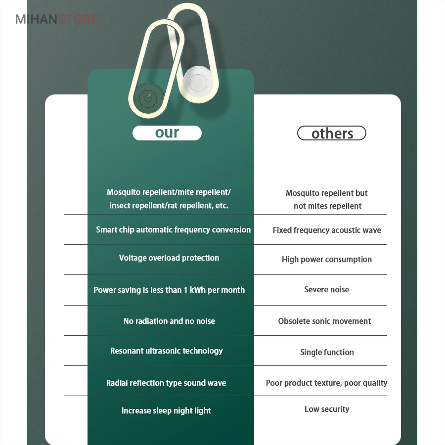 ویژگی های چراغ خواب و حشره کش برقی اولتراسونیک: